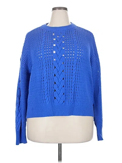 On 34th Pullover Sweater, Size: 2X. Item Details: Blue, Keyhole Neckline, Long Sleeve, Lace Up, Women's Tops, Cotton/Polyester