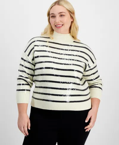 Trendy Plus Sequin Striped Mock-neck Sweater, Exclusively At Macy's In Combo B Al