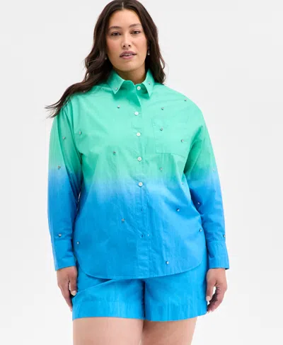 Trendy Plus Size Ombre Rhinestone Shirt Ombre Drawstring Shorts Exclusively At Macys In Blue