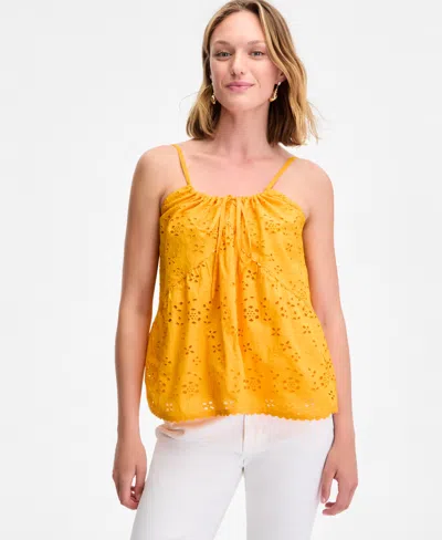 Women's Eyelet Scalloped-trim Tank, Exclusively At Macy's In Yellow