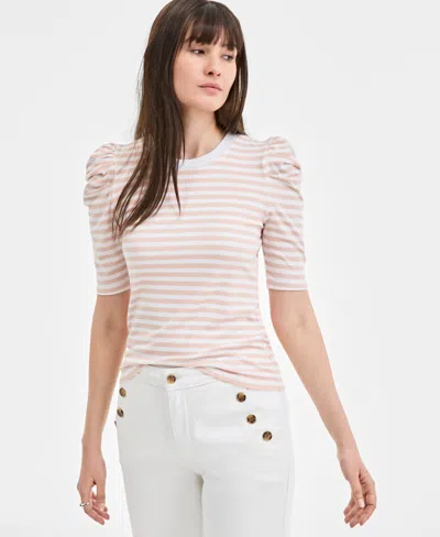 ON 34TH Women's Knit Stripe Volume-sleeve Top, Exclusively At Macy's In Chai Combo