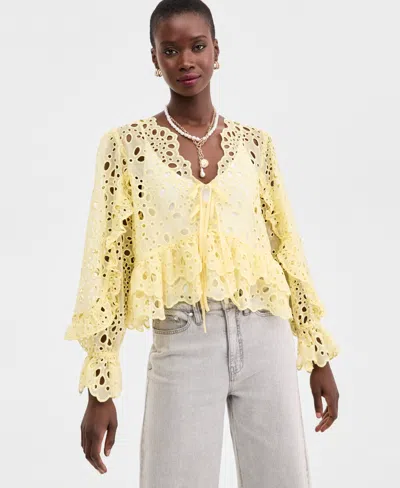 Women's Woven Long-sleeve Cut-work Blouse, Macy's Exclusive