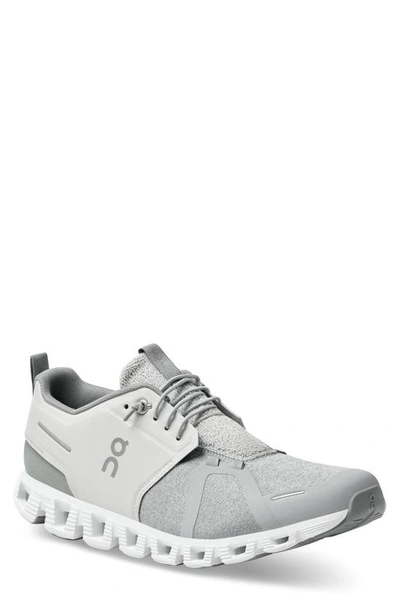 On Cloud 5 Waterproof Sneaker, made with 40% recycled materials, in breathable grey mesh. The key feature of this shoe is its waterproofness, achieved through a waterproof membrane that provides protection against the elements. Maximum comfort thanks to CloudTech cushioning, an 8 mm heel-to-toe drop, and a weight of 281 g. Microfiber tongue, elasticized laces, and reflective inserts. Fabric lining and removable insole. Rubber sole, 3 cm height. Also included is a pair of traditional laces