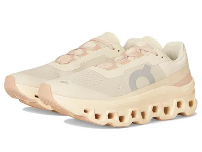 On Cloudmonster - Women's Shoes : Moon/Fawn : Best for Road running, Long runs, Recovery runs, Everyday running. ; Max-cushioned running shoes meet monster-level bounce and energy return for a fun, forward-rolling ride. Loved by runners and non-runners alike, the Cloudmonster is our OG weirdo. Combining responsive CloudTec cushioning with an ultra-powerful Speedboard, it's all about comfy, cushioned landings and powerful, energetic takeoffs. ; Upper: Soft-touch comfort fabric, made using recycled polyester. ; Textile lining with removable insole. ; Playful ride: More CloudTec than ever meets an explosive Speedboard and a radical rocker shape. The result? Big energy return for an explosive feeling. Prepare for take-off. ; Helion superfoam: A monster of a sensation meets big performance. Light, durable, temperature resistant and big on energy return, Helion superfoam brings no-nonsense cushioning to this shoe's playful sensation. ; Max CloudTec: Super soft landings meet maximum rebound for a sensation you won't believe. ; Outsole: Grip rubber compound for traction on asphalt. ; Imported. ; Please note that ONLY the Cloud 5 Terry, Cloud 5 and Cloud 5 Waterproof shoes feature an extra pair of conventional laces, along with the easy-entry speedlaces. Measurements: ; Weight: 9 oz ; Product measurements were taken using size 9, width M. Please note that measurements may vary by size. | On Cloudmonster Women's Shoes Moon/Fawn : 10 M, Synthetic/Textile