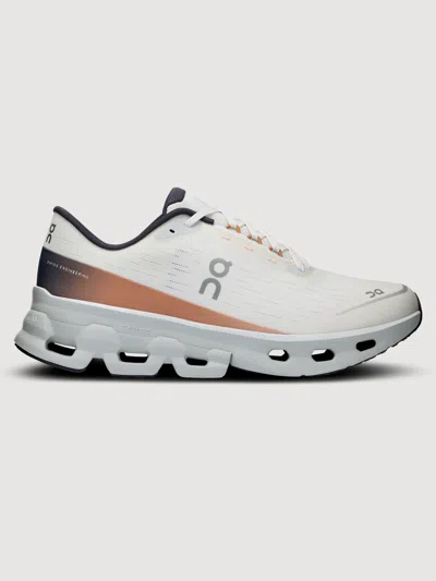 On Cloudspark Sneaker in Ivory & Glacier - Ivory. Size 7.5 (also in 10, 5, 5.5, 6, 6.5, 7, 8, 8.5, 9, 9.5). Synthetic and mesh upper with rubber sole. Made in Vietnam. Lace-up front. Closed-channel construction outsole. Missiongrip traction. Double layered Helion superfoam with two layers of CloudTec cushioning. ONF-WZ159. 3WE10402574. About the designer: