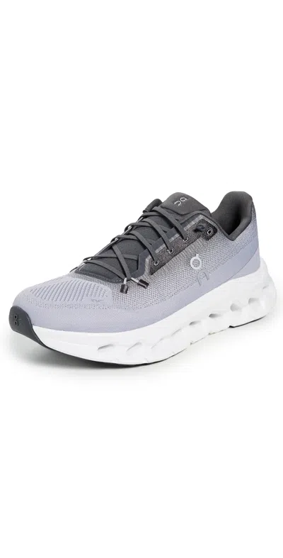 On Cloudtilt - Women's Shoes : Eclipse/Lilac : The primary materials that compose this product contain a minimum of 20 percent recycled content. ; ; Best for Lifestyle and Travel. ; Move comfortably while being high on fashion wearing the On Cloudtilt (Women) Casual and Fashion Sneaker. The Cloudtilt is the first everyday shoe to feature CloudTec Phase Precision-engineered for walking. ; Made with 100% recycled Polyester upper mesh. ; Textile lining and insole. ; Comfort that lasts: Helion superfoam works with CloudTec Phase to guarantee higher energy return. ; Feel good shoes: Made using recycled yarn and a dope dye technique − which uses 90% less water. ; Game-changing cushioning CloudTec Phase delivers the softest, smoothest, most sensational ride to date. ; Synthetic outsole. ; Imported. ; Please note that ONLY the Cloud 5 Terry, Cloud 5 and Cloud 5 Waterproof shoes feature an extra pair of conventional laces, along with the easy-entry speedlaces. Measurements: ; Weight: 9 oz ; Product measurements were taken using size 9, width M. Please note that measurements may vary by size. | On Cloudtilt Women's Shoes Eclipse/Lilac : 6.5 M, Synthetic/Textile