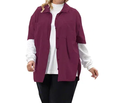 ON THE PLUS SIDE Cotton Short Sleeve Collar Shirt - Plus In Oxblood In Red