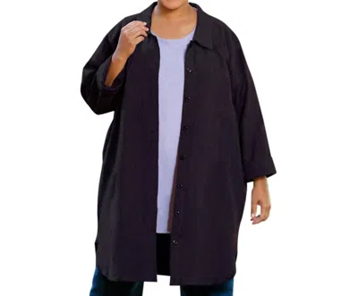 ON THE PLUS SIDE Crinkle Cotton Long Sleeve Collar Button Up Tunic - Plus In Black