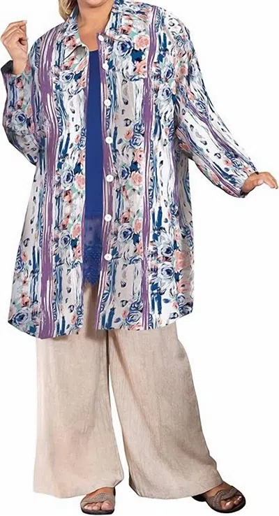 Printed Long Sleeve Chiffon Button Up Rodie Tunic - Plus In Purple Rose In Multi