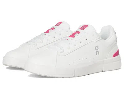 On The Roger Advantage - Women's Shoes : White/Pink : The On The Roger Advantage sneaker is a true wardrobe staple. Easy to style. Easy to love. ; CloudTec cushioning. ; Textile lining and insole. ; Perforated upper. ; Mesh fabric tongue. ; TPU-injected Speedboard allows for more forefoot flex. ; Flex grooves support the natural movement of your feet. ; Please note that ONLY the Cloud 5 Terry, Cloud 5 and Cloud 5 Waterproof shoes feature an extra pair of conventional laces, along with the easy-entry speedlaces. ; Imported. Measurements: ; Weight: 9 oz ; Product measurements were taken using size 9, width M. Please note that measurements may vary by size. | On The Roger Advantage Women's Shoes White/Pink : 9.5 M, Leather