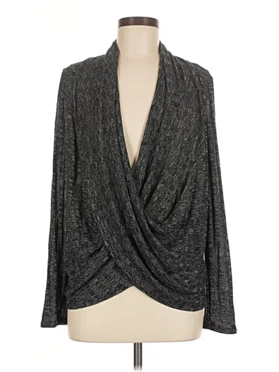On Twelfth Pullover Sweater, Size: Medium. Item Details: Gray, Metallic Pattern, Plunge Neckline, Long Sleeve, Ruched, Women's Tops, Rayon/Polyester/Spandex