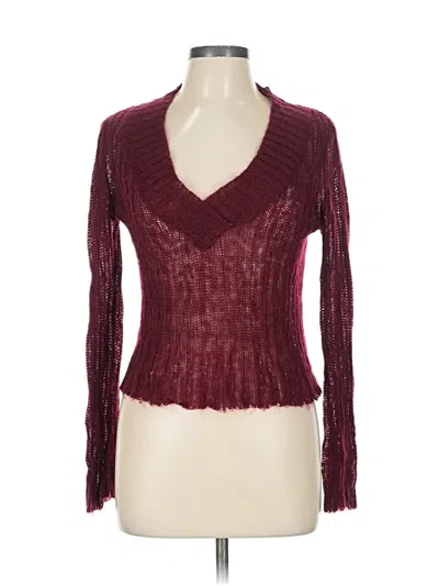 One Step Up Pullover Sweater, Size: Large. Item Details: Burgundy, Plunge Neckline, Long Sleeve, Fringe, Women's Tops, Ramie/Acrylic/Mohair