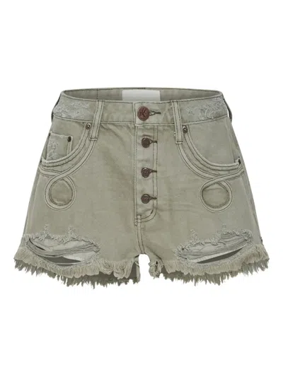 ONE TEASPOON Le Wolves Le Loop Buttoned Frayed Shorts In Green