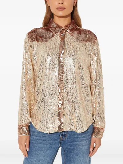 Sequin-embellished Button Shirt In Brown