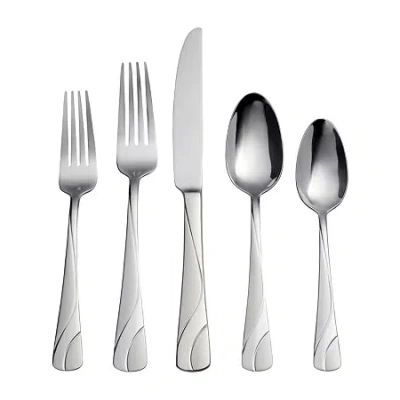 Mimic nature at its purest. Pouring down the bend of the handle, forward sweeps of motion evoke water between a two-toned bank and stream. Their collage urges movement, a natural dance, and a Zen-like perseverance. Return your table to the tranquility of nature with River.# Pieces In Set: 20Included: 4 Dinner Spoon(s), 4 Salad Fork(s), 4 Dinner Fork(s), 4 Teaspoon(s), 4 Dinner Knife(ves)Features: Dishwasher SafeFlatware Grade: 18/0 Stainless SteelHandle Construction: StampedPlace Setting: Service for 4Base Material: 100% Stainless SteelCare: Dishwasher SafeCaddy Included: Caddy Not IncludedCountry of Origin: Imported