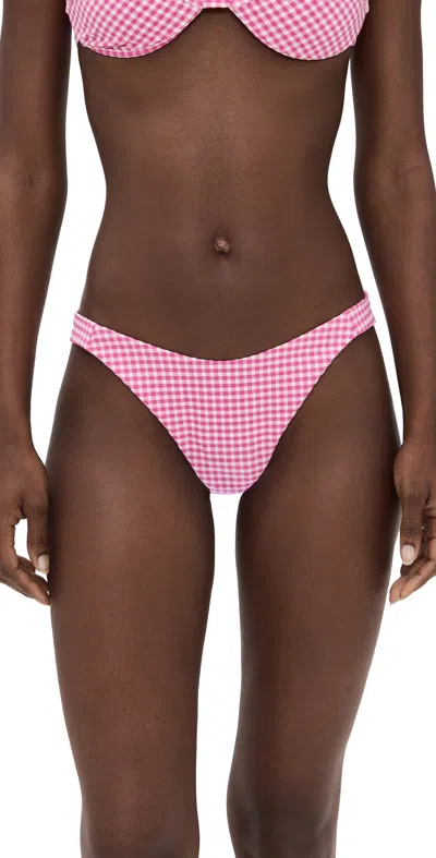 onia Lucie Bikini Bottom in Pink. - size XL (also in L, M, S, XS) onia Lucie Bikini Bottom in Pink. - size XL (also in L, M, S, XS) Self: 46% nylon 44% polyester 10% spandex Lining: 84% nylon 16% spandex. Hand wash cold. Bikini back. Midweight jersey swimwear fabric. Item not sold as a set. ONIR-WX419. WSB35. Carl Cunow and Nathan Romano co-founded onia in 2009, a lifestyle brand inspired by modern voyagers. From swimsuits to loungewear, overnight bags to beach blankets, the range is created with versatility in mind - seamlessly transitioning from the daily routine to faraway retreats, and with the ability to beautifully withstand the rigors of traveling. onia, which means 'sailboat' in Hebrew, represents Carl and Nathan's shared passion for adventure - whether on the sea or off the beaten path - journeys of discovery and fine craftsmanship, rooted in superior design.
