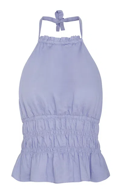 Founded in 2009 by Carl Cunow and Nathan Romano; Onia's range — from basics to beachwear — is designed for ease with clean-cut silhouettes and high-quality fabrics to create a reliable wardrobe for every day. This smocked halter top is made from linen blended with Tencel; making it lightweight and naturally durable. It’s ruched throughout the body and adorned with adjustable ties that channel through the high neckline.