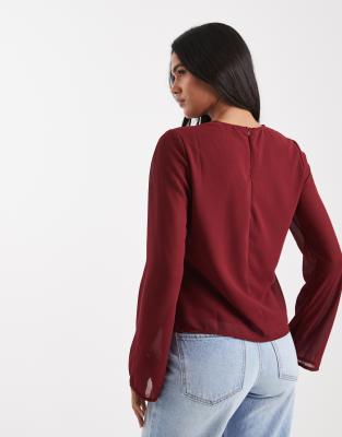 Tops by Only Round neck Tie front Long sleeves Back zip closure Regular fit