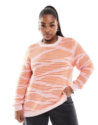ONLY CURVE Textured Sweater In Pink And Orange Print