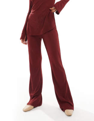 ONLY High Waist Textured Pants In Dark Red - Part Of A Set