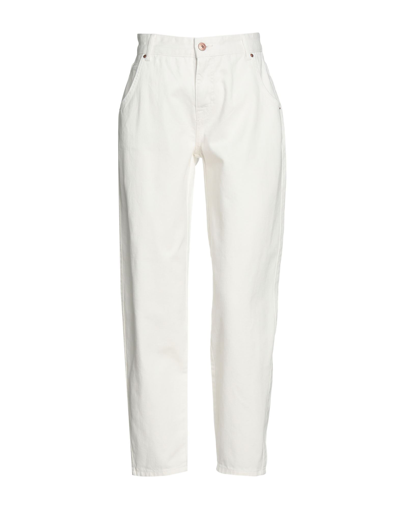 denim, brand logo, solid color, colored wash, mid rise, belt loops, tapered leg, regular fit, zipper closure, button closing, five pockets, this brand is member of better cotton initiative (bci), supporting more sustainable cotton farming., mom-cut model , Color: White , Size: L-30L