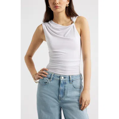High-polish hardware cinching the left shoulder strap catches the light in this date-ready top cut from stretchy, figure-hugging jersey. Asymmetric neck Sleeveless 95% polyester, 5% spandex Hand wash, dry flat Imported