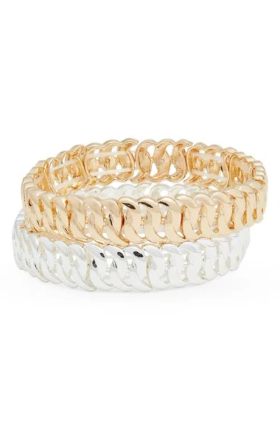 Whether stacked or worn separately these polished chain-link bracelets are the perfect way to elevate any look. Set of two bracelets 2 1/4" inner circumference Stretch to fit Brass/sterling silver plate/14k-gold plate Imported