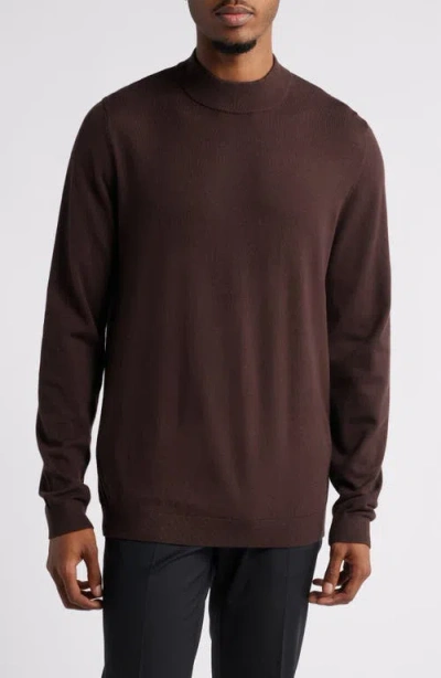 OPEN EDIT Solid Mock Neck Sweater In Brown Bean