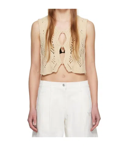 Vest in mesh featuring a diamond pattern, a Y-neckline and hook-and-eye closures at the front.