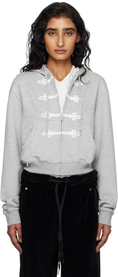French terry hoodie. · Drawstring at hood · Zip closure · Printed graphics and patch pockets at front · Rib-knit hem and cuffs Supplier color: Gray