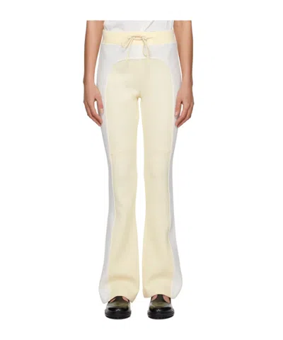 Stretch jersey trousers with a paneled design, a ribbed elastic waistband with a drawstring, darts at the knees and flared cuffs.