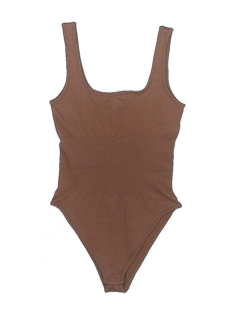 OQQ Bodysuit, Size: Small. Item Details: Brown, Scoop Neck, Sleeveless, Women's Tops, Nylon/Spandex