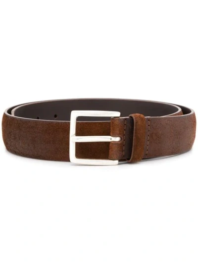Brown leather adjustable Tejus belt from Orciani featuring an adjustable fit and a silver-tone buckle.