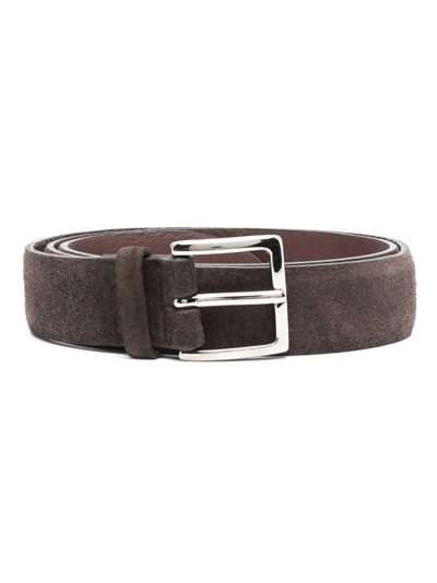 buckle-fastening suede belt from ORCIANI featuring chocolate brown, calf suede, silver-tone buckle fastening, pre-drilled holes and adjustable fit.