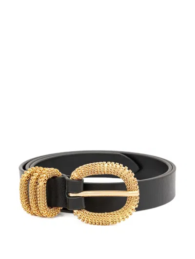 ORCIANI Chain Triple Loop Leather Belt In Black