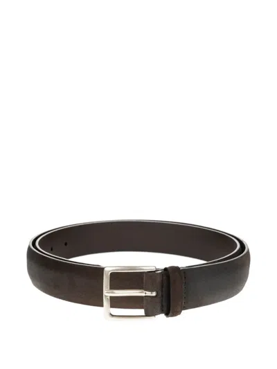 brown suede leather silver-tone buckle rectangular buckle