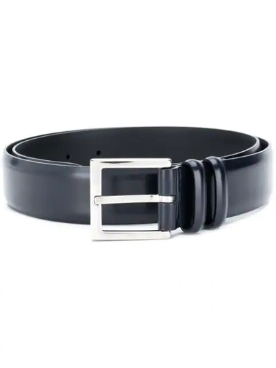 Navy blue leather belt from Orciani featuring a square metallic buckle and five belt holes.