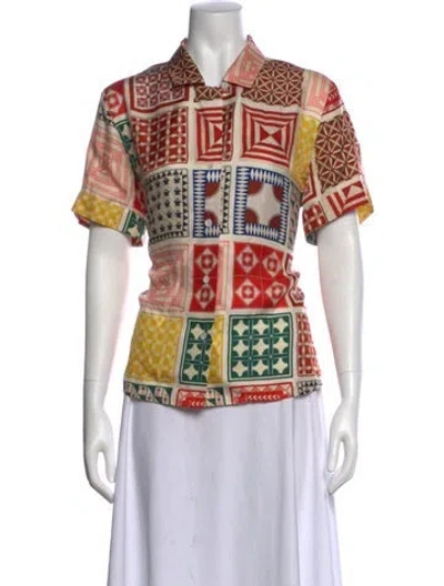Pre-owned Printed Short Sleeve Button-up Top In Multi