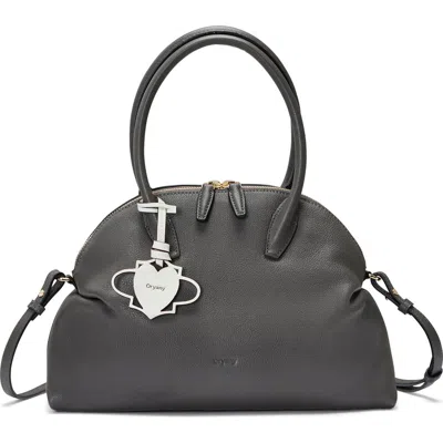 A nostalgic, retro silhouette makes an instant old favorite of this versatile bowling bag fitted with a removable crossbody strap and rolled top handles. Two-way top-zip closure Top carry handles; removable, adjustable crossbody strap Structured silhouette with flat base for stability Logo-jacquard lining Leather Imported
