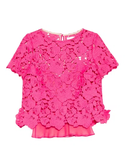 OSCAR DE LA RENTA Floral Lace Top In Pink