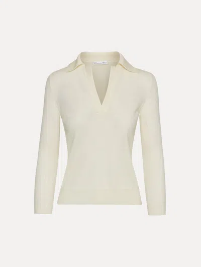 OSCAR DE LA RENTA Polo Collared Pullover In Neutral