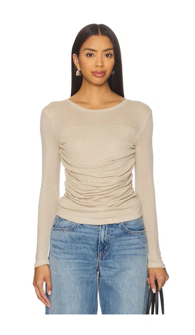OSIS STUDIO Wendy Top in Cream. - size M (also in L, S, XS) OSIS STUDIO Wendy Top in Cream. - size M (also in L, S, XS) 100% Lyocell. Dry clean. Pullover styling. Front ruching. Top chest intentionally sheer. OSIR-WS24. OSF25T43.