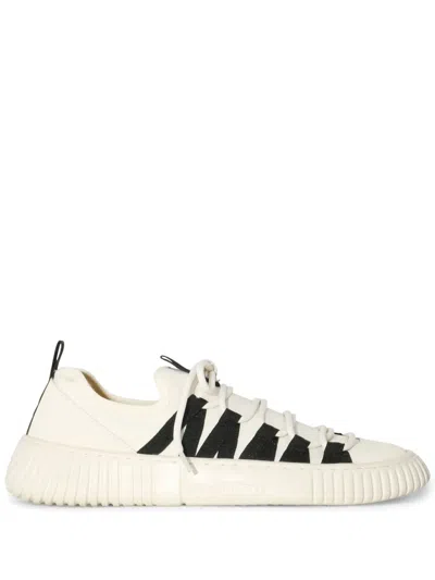 white/black calf leather front lace-up fastening pull-tab at the heel and tongue round toe branded insole ridged rubber sole