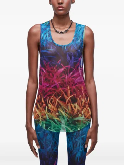 Rainbow-print Mesh Top In Multi