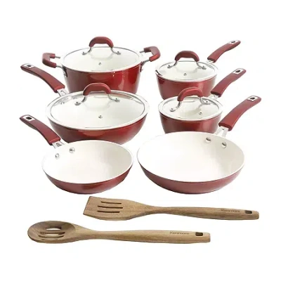 Step up your cooking game with the high-quality Kenmore Arlington Aluminum Ceramic Coated Nonstick Cookware Set in Metallic Red. The cookware combo allows for multiple cooking jobs as the set provides variety of kitchen essentials. The heavy gauge aluminum body is built to handle gas, electric, halogen, and induction heat. Cut down on fats and oils with the nonstick ceramic coating, allowing for much healthier dishes. Create outstanding lemon seared chicken, penne pasta, cheese omelet and many other dishes for guests to enjoy.# Pieces In Set: 12Included: 1 1.25 Qt. Saucepan(s) With Lid(s), 1 1.5 Qt. Saucepan(s) With Lid(s), 1 4.2 Qt. Dutch Oven(s) With Lid(s)Features: Dishwasher Safe, Vented LidCooktop Compatibility: Induction, Gas, ElectricRecommended Utensil Material: Wood, Silicone, NylonCare: Hand Wash, Dishwasher SafeMaterial: AluminumCountry of Origin: Imported