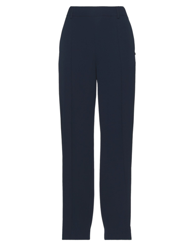 crepe, brand logo, solid colour with appliqués, belt loops, high waisted, straight leg, regular fit, stretch, no pockets , Color: Midnight blue , Size: 8