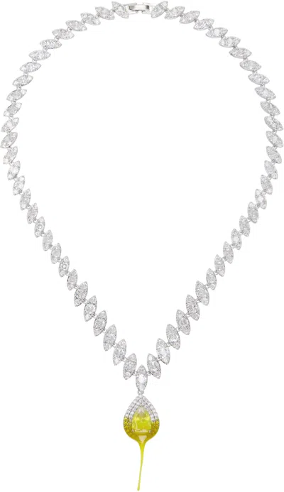 Handcrafted cup-chain necklace in silver-tone metal. · Prong-set crystals at length · Rubber-dipped pendant with pavé-set crystals · Box-clasp fastening · L22 Supplier color: Mustard