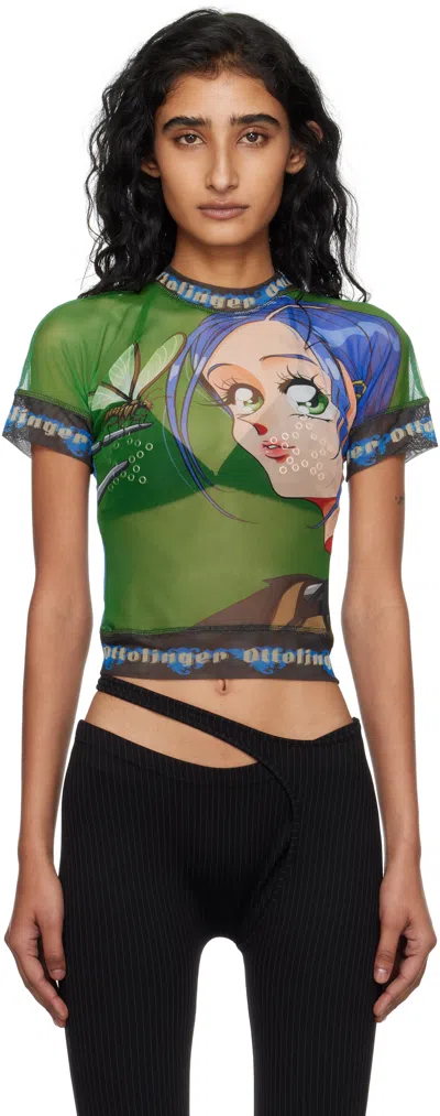 Ottolinger Mesh Tee in Green,Blue. - size S (also in L, M, XS) Ottolinger Mesh Tee in Green,Blue. - size S (also in L, M, XS) 90% recycled polyester 10% elastane. Hand wash. Pull-on styling. Front and back printed design. Lightweight mesh fabric. Garment is intentionally sheer, undergarments will show through.. OTTR-WS18. 101-100401-05.