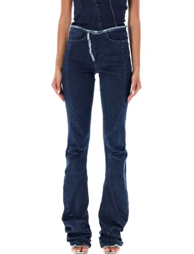 OTTOLINGER Women's Denim Raw Edge Draped Design Pants In Blue