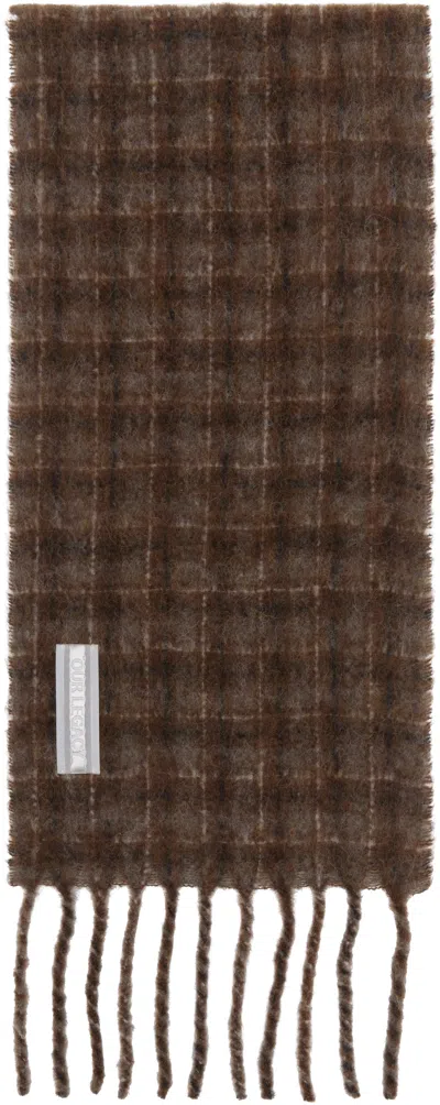 OUR LEGACY Textured Brown Checkered Scarf With Fringed Edge In Multi